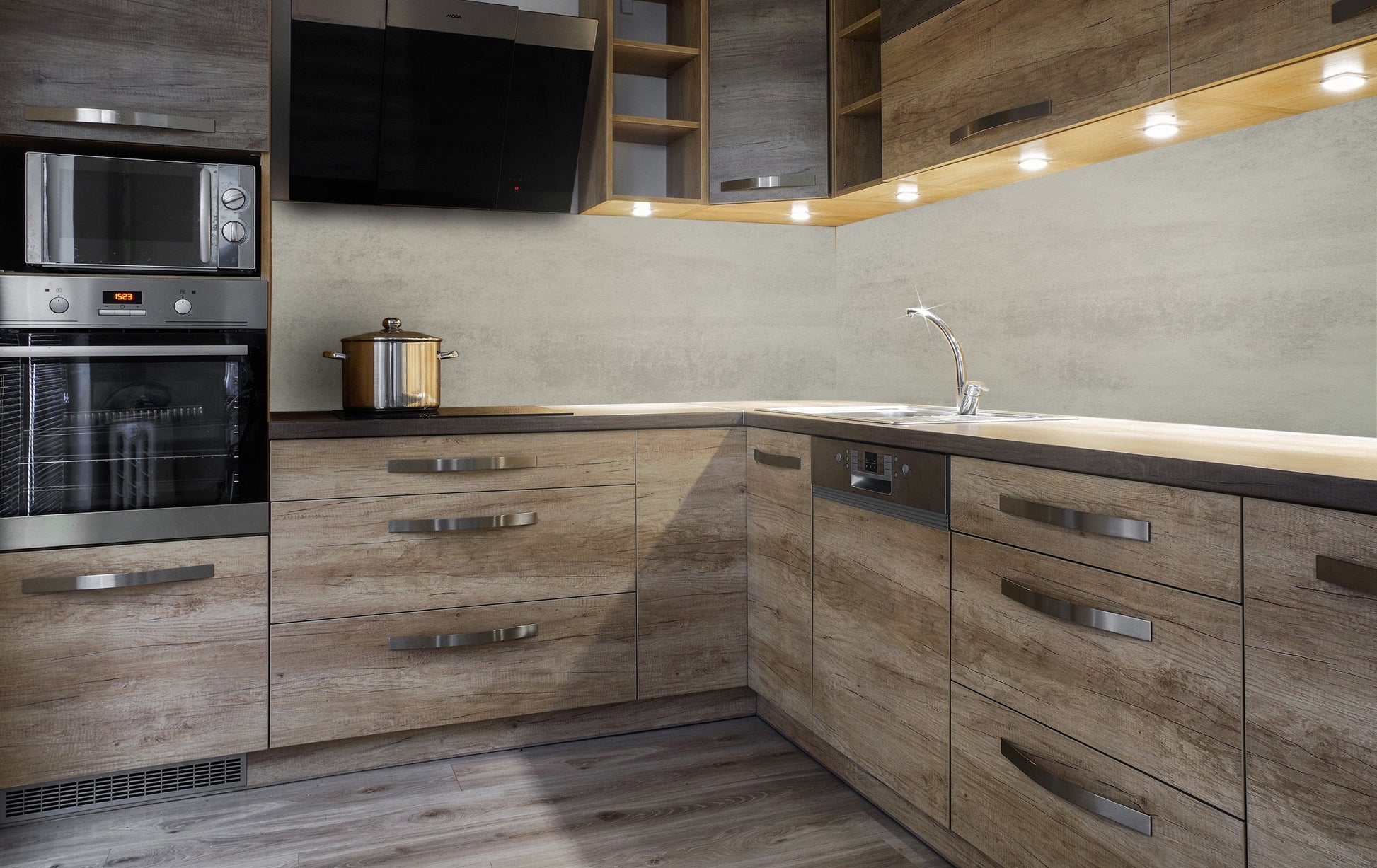 Bringen Sie Ihre Küche zum Strahlen mit der Küchenrückwand Beton grau! Mit ihrem schönen, rustikalen Design verleiht Sie Ihrer Küche ein ästhetisches Gefühl und wird zu einem einzigartigen Blickfang. Lassen Sie sich verzaubern!